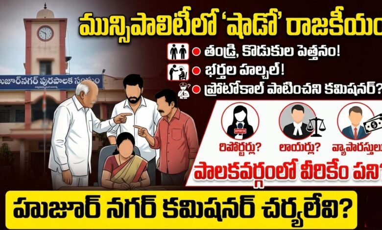 సూర్యాపేట జిల్లా హుజూర్ నగర్ మున్సిపాలిటీలో ప్రస్తుతం అసలు సిసలు పాలకవర్గం కంటే, వారి కుటుంబ సభ్యుల పెత్తనమే ఎక్కువగా ఉందన్న విమర్శలు వెల్లువెత్తుతున్నాయి. తండ్రులు, భర్తలు, కొడుకులు మున్సిపల్ కార్యాలయంలో తిష్టవేసి చక్రం తిప్పుతుంటే, అసలైన ప్రజాప్రతినిధులు నామమాత్రంగానే మిగిలిపోతున్నారు.