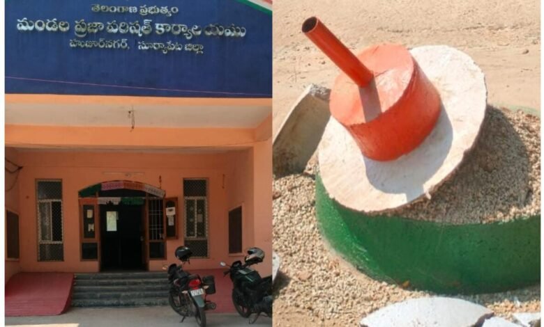 హుజూర్ నగర్ MPDO కార్యాలయంలో జాతీయ జెండా దిమ్మె ధ్వంసం