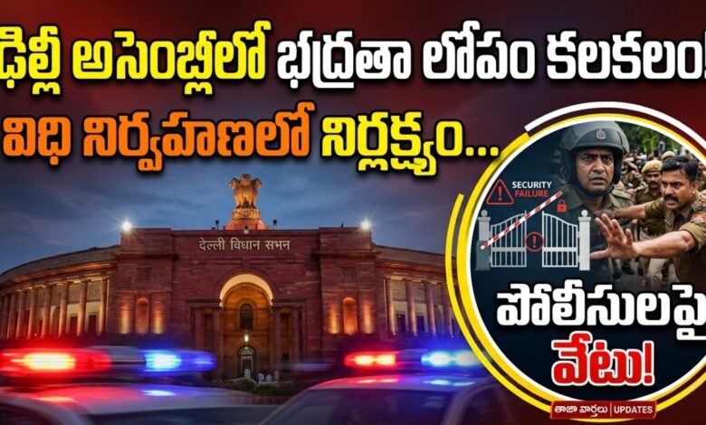 ఢిల్లీ శాసనసభ (అసెంబ్లీ) ప్రాంగణంలో చోటుచేసుకున్న తీవ్ర భద్రతా లోపం ఘటన కలకలం రేపింది. ఈ ఘటనకు సంబంధించి బాధ్యులైన పోలీసు అధికారులపై ఉన్నతాధికారులు కఠిన చర్యలు తీసుకున్నారు.