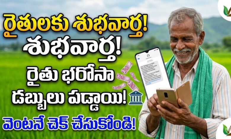 తెలంగాణ ప్రభుత్వం రైతులకు పెట్టుబడి సాయం కింద అందించే రైతు భరోసా నగదును రైతుల బ్యాంక్ ఖాతాల్లో జమ చేయడం ప్రారంభించింది. అర్హులైన రైతులు తమ మొబైల్ ఫోన్లకు వచ్చే SMS ద్వారా లేదా బ్యాంక్ స్టేట్మెంట్ ద్వారా నగదు పడిందో లేదో సరిచూసుకోవచ్చు.